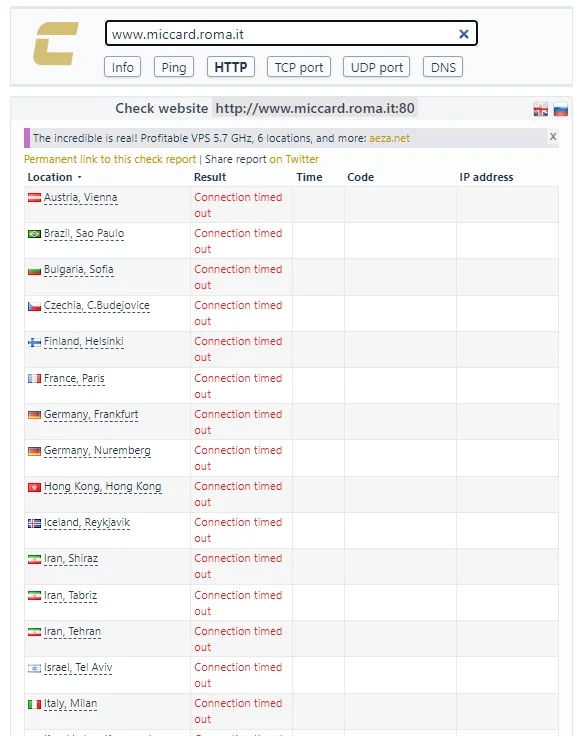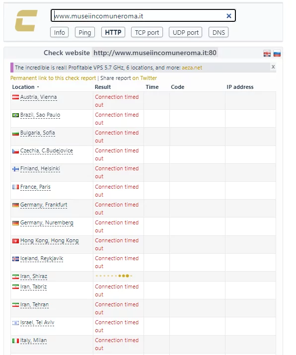 Potrebbe trattarsi di un disservizio arrecato dai criminali informatici al Data Center dell’azienda che ospita i sistemi oppure di un attacco di DDoS (Distributed Denial of Service), in quanto tutti i siti risultano non raggiungibili da posizione geografiche differenti dall’Italia. Al momento non sono state fatte rivendicazioni da parte di cybergang conosciute che utilizzano questo genere di attacchi per attività di hacktivismo come NoName057 o Killnet.