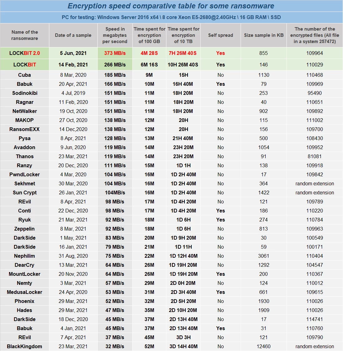 Come potete notare, il nuovo LockBit 2.0 ha una velocità di cifratura impressionante.