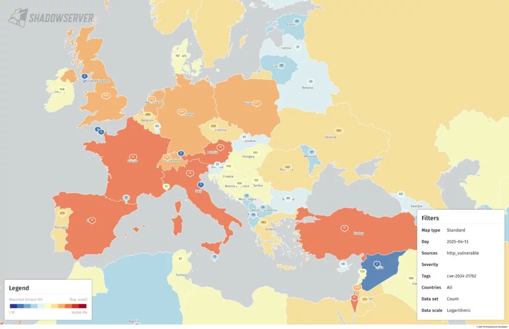 Abbiamo condotto una ricerca su shadowserver per renderci conto dei numeri dei dispostivi ad oggi vulnerabili alle 3 CVE in esame. Eccetto la CVE più “anziana” che conta pochi dispositivi, le altre due riportano numeri sull’ordine delle migliaia.