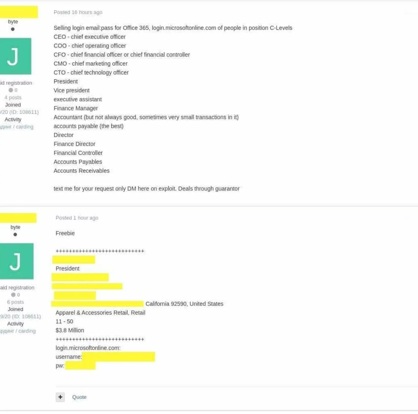 Con la cifra compresa tra100 e 1500 dollari per #account, a seconda delle dimensioni dell’azienda e del ruolo esecutivo, un hacker sta attualmente vendendo le #password per gli #account di posta elettronica di centinaia di dirigenti di livello C presso aziende di tutto il mondo.