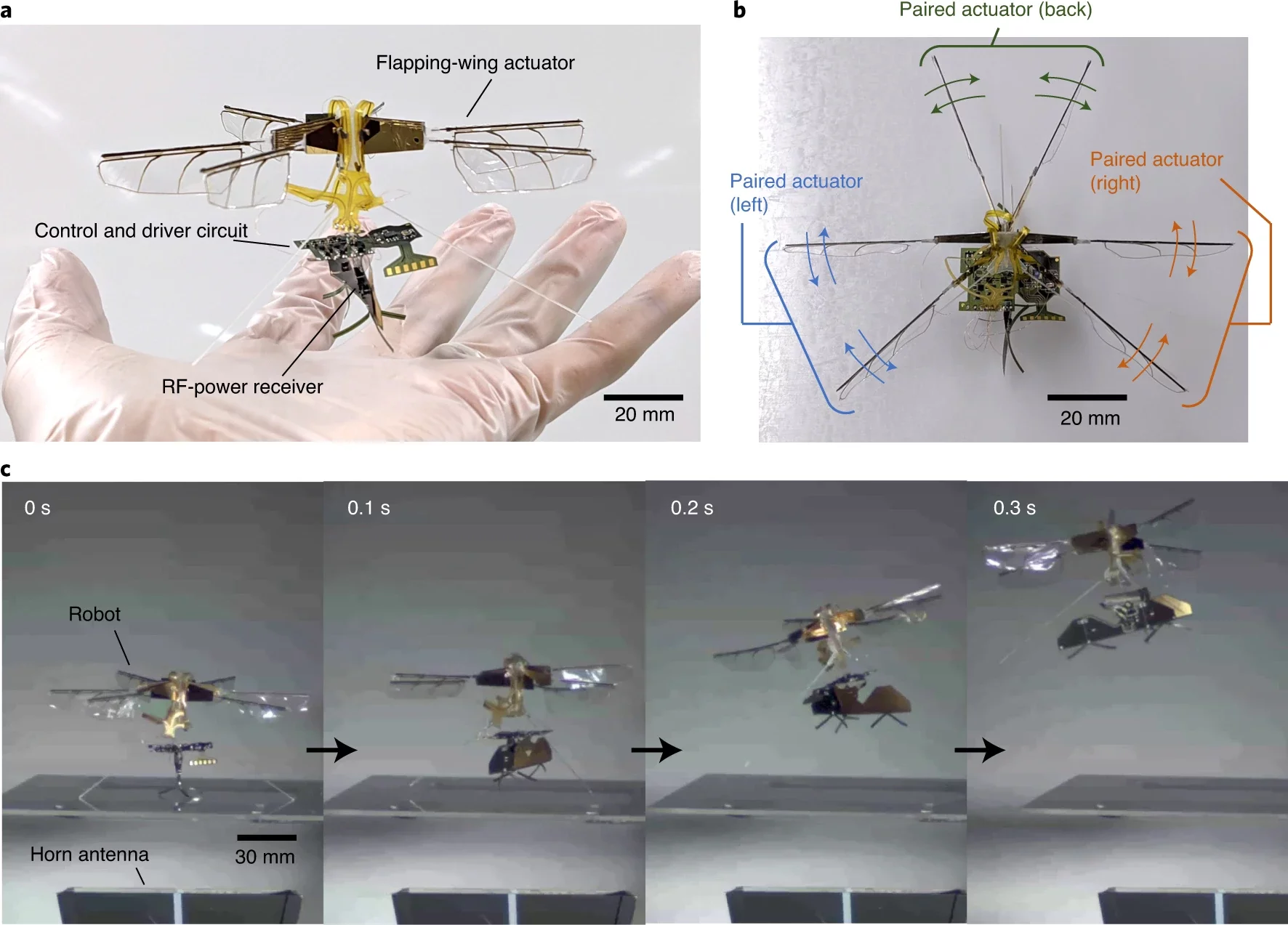 I ricercatori del Toyota Central R&D Labs hanno creato un robot volante delle dimensioni di un insetto che può sbattere le ali. Il robot è alimentato da un ricevitore di energia RF con un’impressionante densità di potenza di 4900 W/kg.
