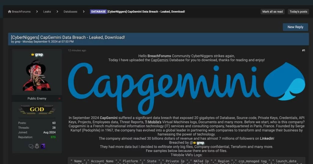 Un recente post apparso su un noto forum del dark web ha sollevato preoccupazioni riguardo a una possibile violazione dei dati di Capgemini, una delle principali società di consulenza e servizi IT a livello globale.