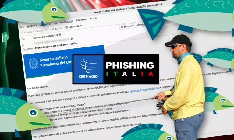 A partire dalle prime ore del mattino, si sta diffondendo una massiccia campagna di phishing che utilizza come oggetto “Avete diritto a un rimborso fiscale” e sfrutta i loghi del Governo Italiano e della Presidenza del Consiglio dei Ministri.