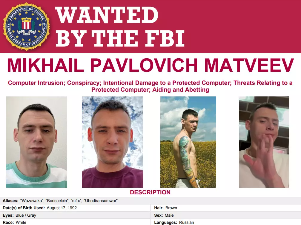 Le autorità statunitensi accusano Matveev, per essere una “figura centrale” nello sviluppo e nella distribuzione delle varianti di ransomware Hive, LockBit e Babuk. Si ritiene inoltre che Matveev abbia avuto legami con la banda di ransomware Conti, che ha sostenuto la Russia.
