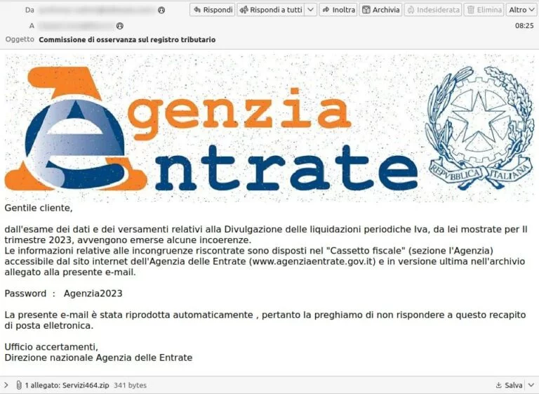 Non è la prima volta che il malware Ursnif viene diffuso in questo modo e non è neanche la prima volta che il tema della campagna sia l’Agenzia delle Entrate.