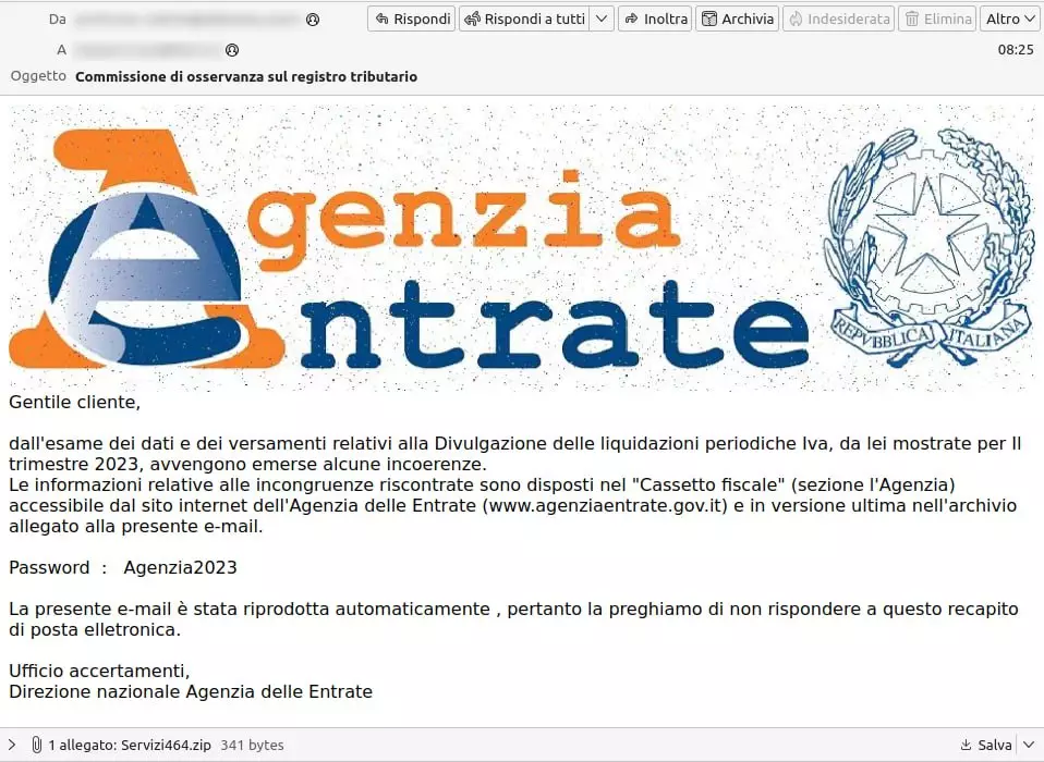 Nello specifico, si tratta di una nuova campagna che diffonde il malware Ursnif a tema Agenzia delle Entrate che fa riferimento ad alcune incoerenze con l’Agenzia.