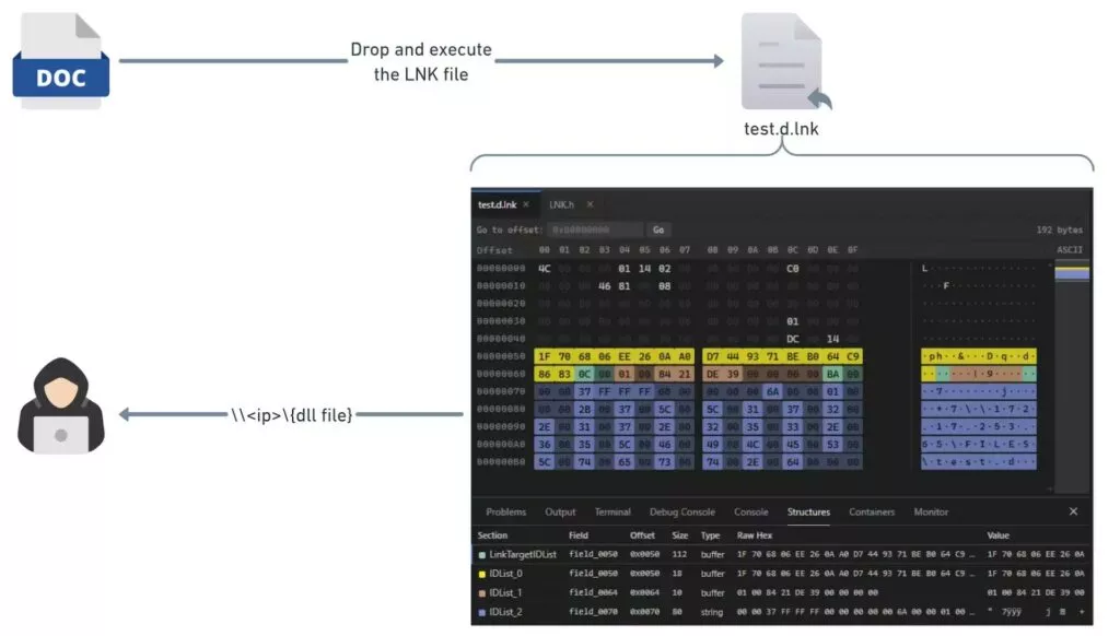 La semplice apertura di una cartella contenente un collegamento dannoso fa sì che Esplora risorse tenti di caricare la sua icona. A questo punto, Windows si connette automaticamente alla risorsa remota tramite un protocollo di rete e invia i dati di autenticazione. L’utente non clicca su nulla e non è nemmeno consapevole di ciò che sta accadendo.
