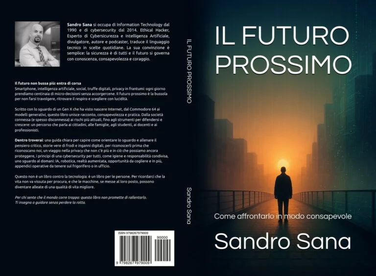 Ci sono libri che spiegano la tecnologia e libri che ti fanno capire perché dovresti fermarti un minuto prima di scorrere un feed. Il Futuro Prossimo, il nuovo lavoro di Sandro Sana, disponibile su Amazon, appartiene alla seconda categoria: non pretende di formarti, pretende di farti pensare. E lo fa senza tecnicismi, senza barriere e senza quella distanza che spesso l’informatica mette tra chi scrive e chi legge.