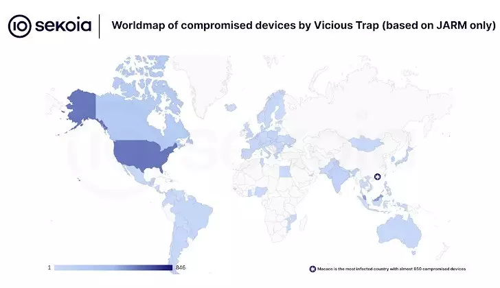 Gli analisti di Sekoia hanno scoperto che il gruppo di hacker ViciousTrap ha compromesso circa 5.300 dispositivi di rete edge in 84 paesi, trasformandoli in una botnet simile a un grande honeypot.