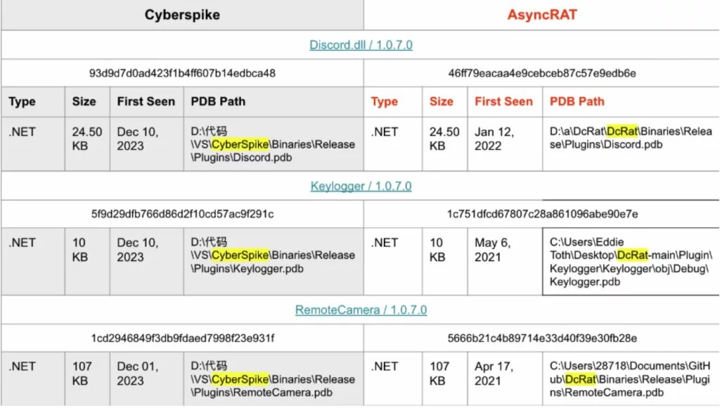 Ulteriori verifiche hanno dimostrato che l’intera suite Cyberspike coincide con la versione 1.0.7.0 di AsyncRAT, malware noto e diffuso dal 2019, da cui derivano anche varianti come DCRat e VenomRAT.