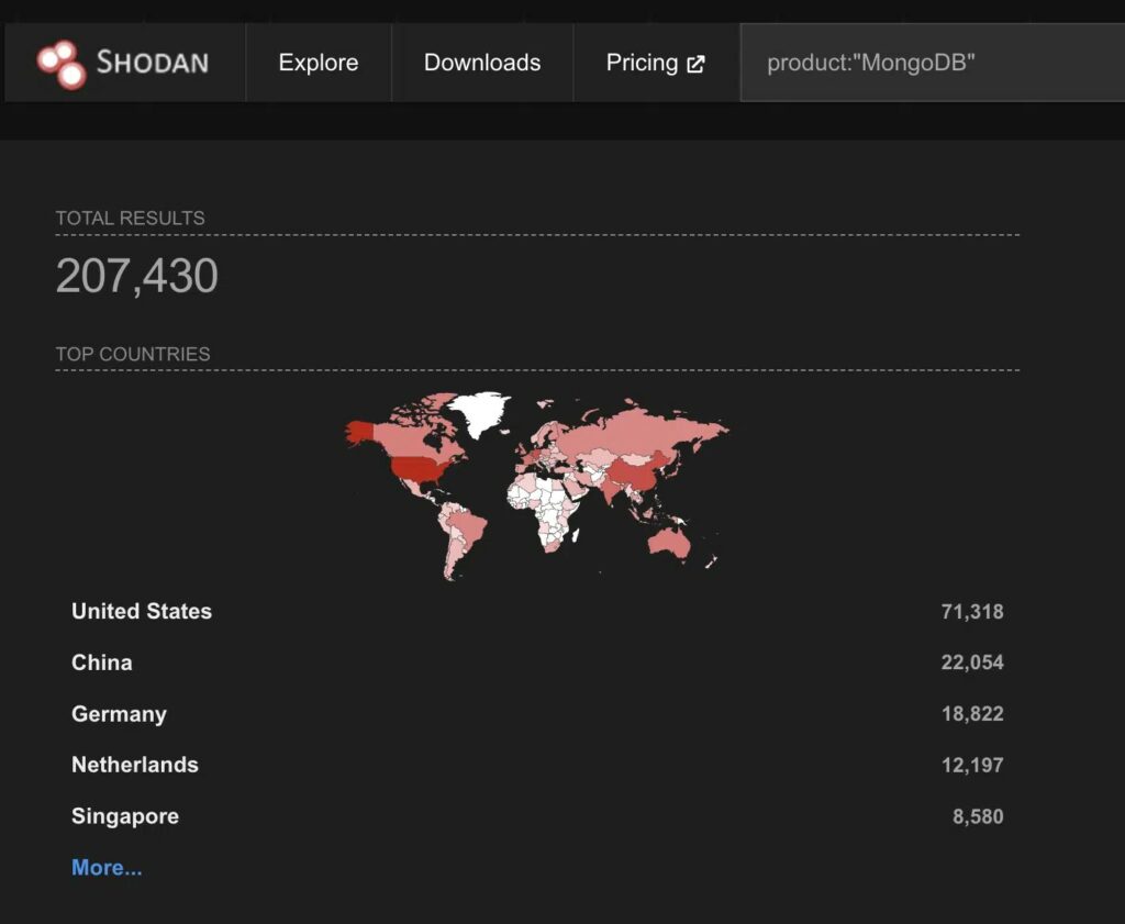 Secondo i dati disponibili tramite Shodan, oltre 207.000 istanze MongoDB risultano esposte su Internet, il che rende la superficie d’attacco piuttosto ampia, soprattutto quando i database vengono configurati per accettare connessioni da qualsiasi indirizzo IP.
