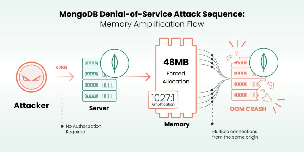 Il risultato pratico è sorprendente. Un’istanza MongoDB con 512 MB di RAM può andare in crash con appena dieci connessioni simultanee. Parliamo di meno di mezzo megabyte di traffico malevolo.