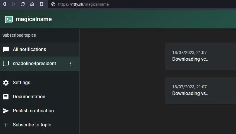Nel codice sopra possiamo notare che ntfy.sh viene utilizzato per tenerci aggiornati sull’avanzamento dell’installazione: