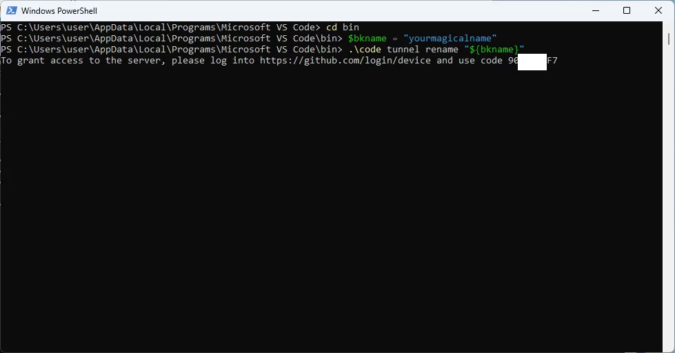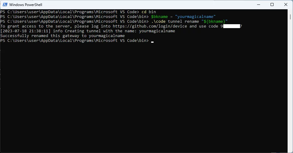 code tunnel rename "${bkname}"