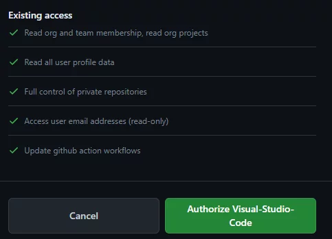 Quindi assicurati di aver scelto l’account Github corretto e premi “Autorizza Visual-Studio Code”.
