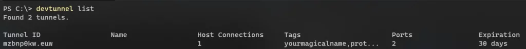 devtunnel list