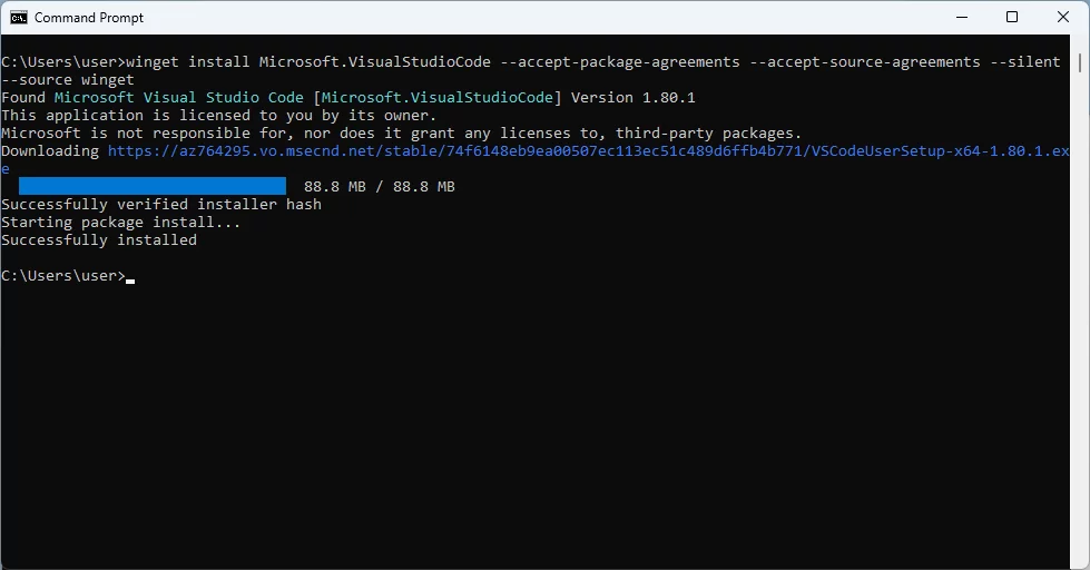 In questo modo, winget installerà automaticamente VSCode sotto: %localappdata%\Programs\Microsoft VS Code